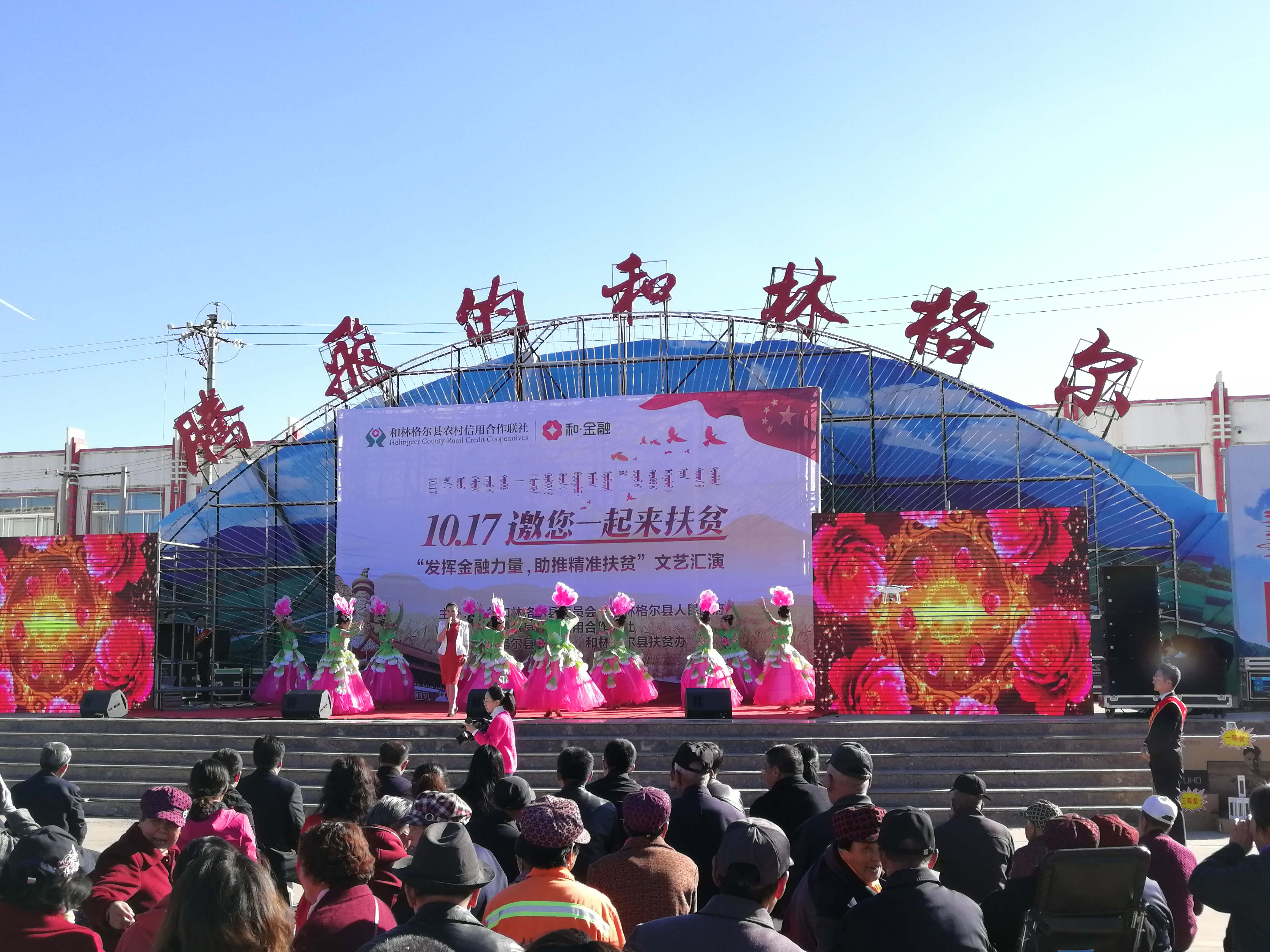 10月17日,在第五個“國家扶貧日”到來之際,由和林格爾縣委、政府主辦,和林縣聯(lián)社承辦的“10.17邀您一起來扶貧—發(fā)揮金融力量,助推精準扶貧”文藝匯演在和林縣盛樂廣場舉辦。