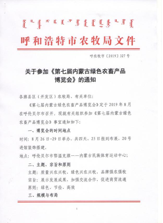 名稱:呼倫貝爾國際綠色發(fā)展大會暨第七屆內(nèi)蒙古綠色農(nóng)畜產(chǎn)品博覽會