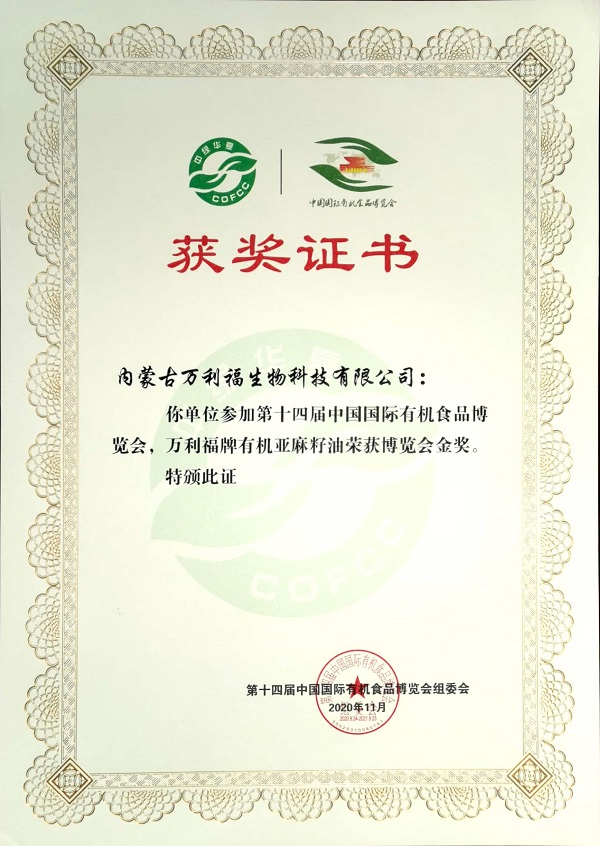 本次博覽會,我公司“萬利福有機亞麻籽油”榮獲得第十四屆中國國際有機食品博覽會金獎,展會期間與各采購商進行了業務洽談,取得了宣傳展示和市場拓展的雙重效益。
