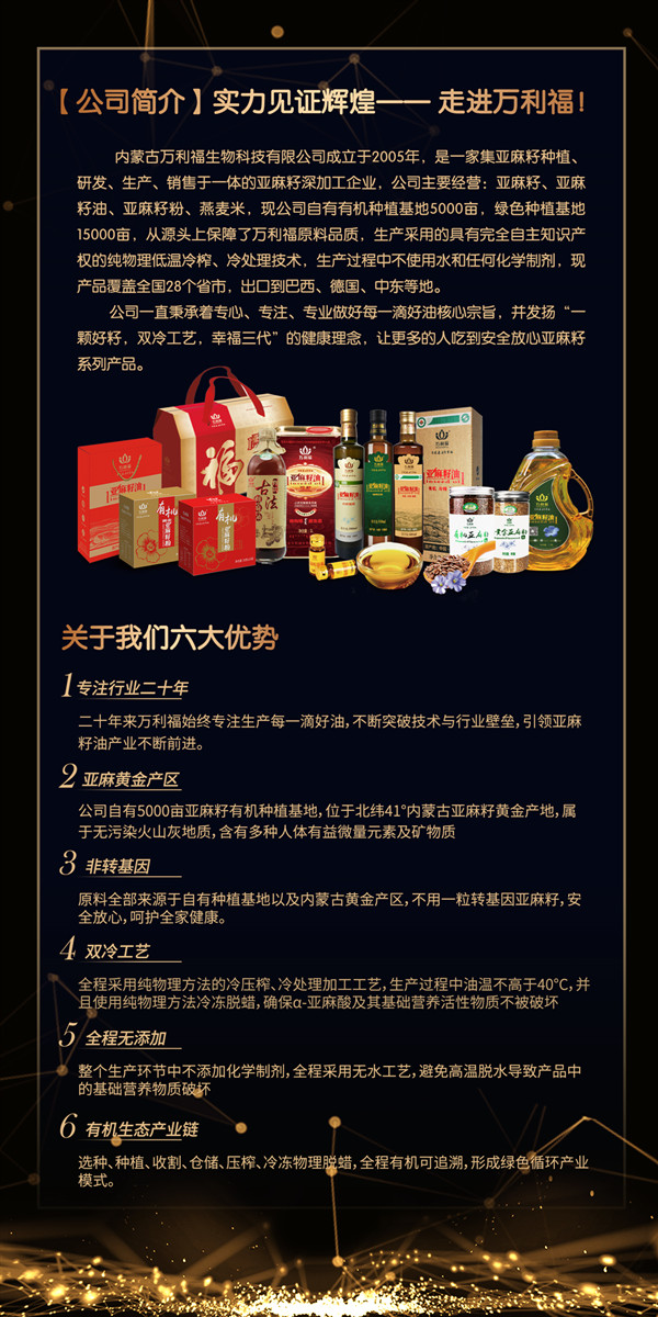 內蒙古萬利福生物科技有限公司作為一家集亞麻籽種植、研發、生產、銷售于一體的亞麻籽深加工企業,期間