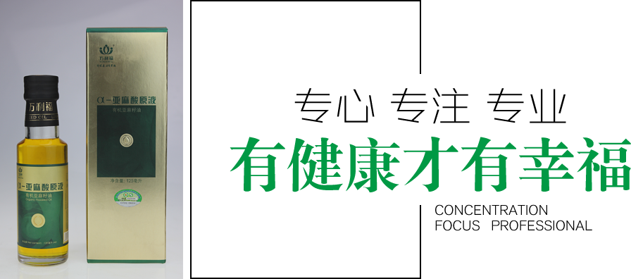 我們秉承“萬利福,有健康才有幸福”的理念,倡導“吃油革命” 、“向油要健康” 的行動!提倡推行歐米伽膳食改善國人身體健康。堅持科技先導,品質取勝的理念,歷經十年,使萬利福產品得到廣大消費者的好評,更致力于宣傳a-亞麻酸對人體健康的必要性及重要性。
